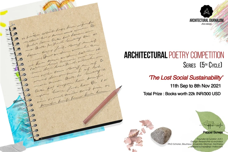 Tema se ozira k spremembam, ki jih je prinesel napredek človeštva iz manjših skupnosti v današnje, polne konkretnih fizičnih pregrad med posamezniki. K sodelovanju vabi vse pisce poezije v Angleščini, dobrodošla je tudi vizualna podoba vsakega dela. Namen organizacije, ustanovljene s strani arhitekta Pappala Suneje, je raziskovanje arhitekture s poetičnega vidika in osveščanje o izbranih temah. Prijave so odprte do 8. novembra 2021.
