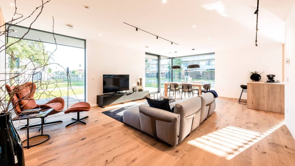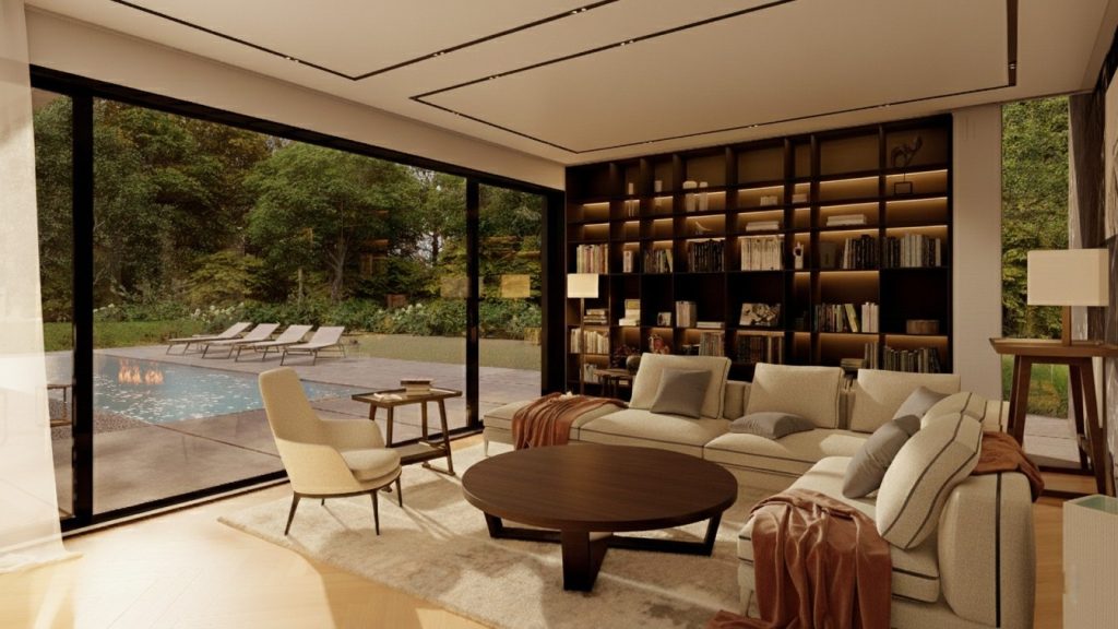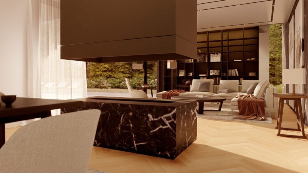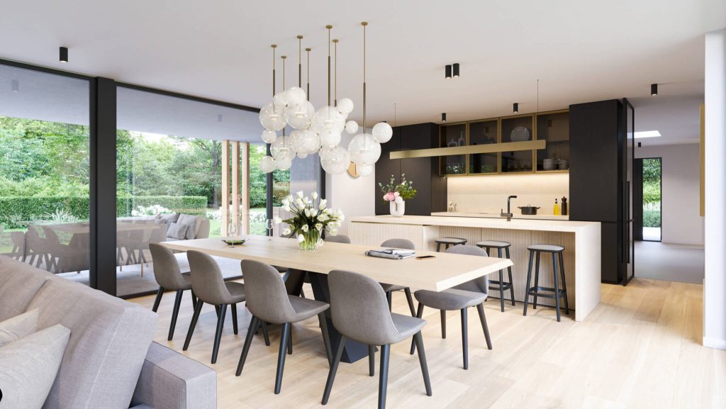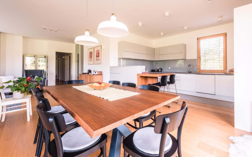 Čudovita družinska hišo, ki je nastala v sklopu Lumarjeve risalne deske. Projekt R9 navdušuje z zračnimi in svetlimi dnevno bivalnimi prostori ter intimno zasnovanimi spalnimi prostori, ki skupaj zagotavljajo vrhunsko bivalno udobje na 447 kvadratnih metrih. V pritličju se nahajata prostorna kuhinja in jedilnica z izhodom na teraso, osrednji dnevni prostor pa se povezuje s klubsko sobo in fitnesom v kletni etaži, kar ustvarja povezan in funkcionalen bivalni tok. Spalni del predstavlja miren umik z dvema sobama, kabinetom in udobno spalnično suito. Arhitekturno zasnovo zaznamuje jasna delitev programa z igro dveh volumnov: višji, podkleten dnevno-bivalni del in nižji spalni del v zaledju. Celoto dopolnjuje ravna streha s tankim napuščem, ki hiši daje sodoben in prepoznaven značaj.