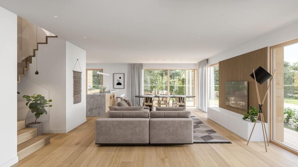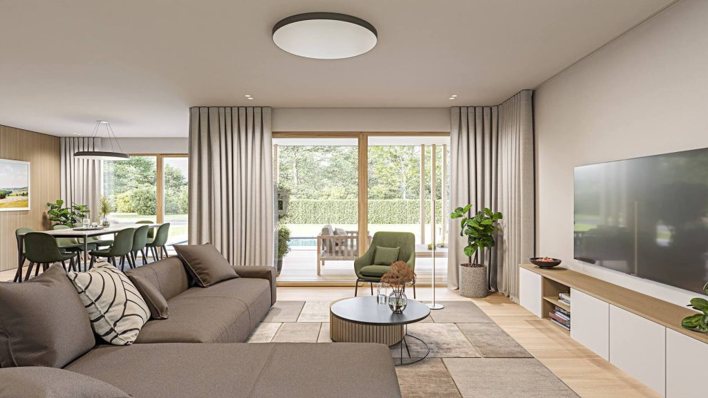 Sodobno oblikovana in prostorsko odprta hiša Atractivo 180 je zasnovana za vse, ki radi preživljajo čas doma v krogu družine in prijateljev. Udobna dnevna soba, jedilnica in kuhinja ustvarjajo idealno okolje za druženja, ki se nemoteno nadaljujejo tudi pod zunanjim nadstreškom. Spalni del je zasnovan kompaktno in izjemno udobno, z dvema nadpovprečno velikima otroškima sobama ter ločeno spalnico z walk-in garderobo. Iz spalnice je omogočen neposreden izhod na zunanjo pohodno teraso, ki dopolnjuje občutek zasebnosti in sprostitve. Hiša Atractivo je na voljo tudi v velikostih 146 in 159 kvadratnih metrov.