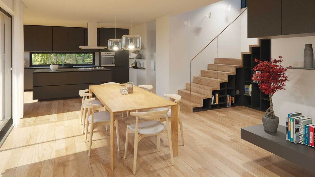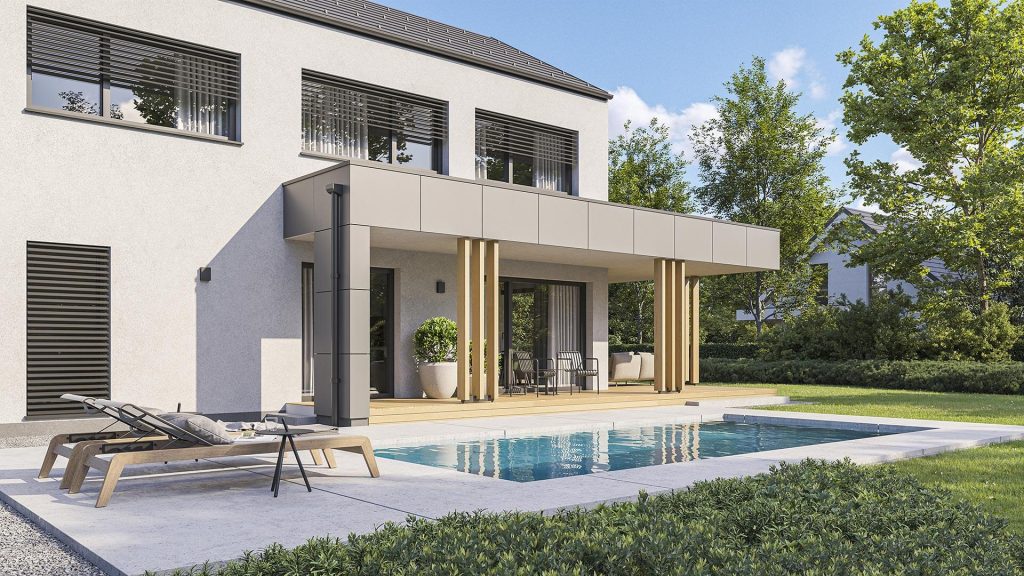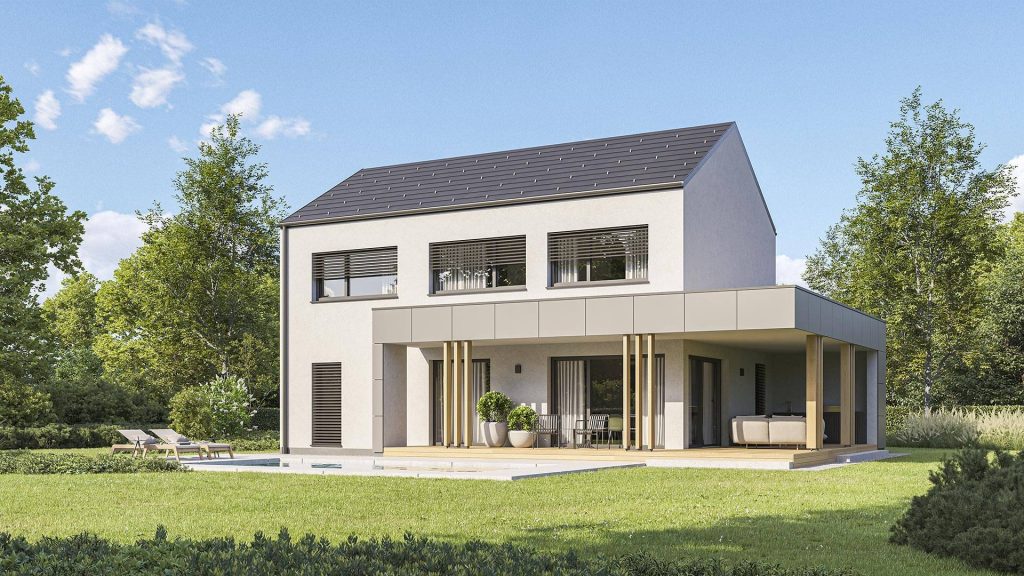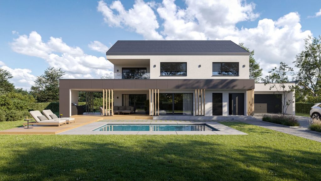 Hiša Varius-D 206 s premišljeno zasnovo ponuja 206 kvadratnih metrov bivalnih površin, ki navdušujejo z občutkom prostornosti in močno povezanostjo z naravo. Posebna prednost je 48 kvadratnih metrov velika pokrita terasa, zasnovana kot poletna dnevna soba in prijetno zatočišče v vseh letnih časih. Osrednji arhitekturni poudarek predstavljajo odprte ravne stopnice, ki se zaključijo s panoramskim oknom in čudovitim pogledom na okolico ter prostoru dajejo občutek lahkotnosti. V nadstropju sta dve prostorni otroški sobi z lastno kopalnico in skupnim družabnim kotičkom, medtem ko starševska spalnična suita z izhodom na diskretno teraso ponuja popoln umik za sprostitev. Hiša Varius je na voljo tudi v velikostih 152 in 173 kvadratnih metrov.